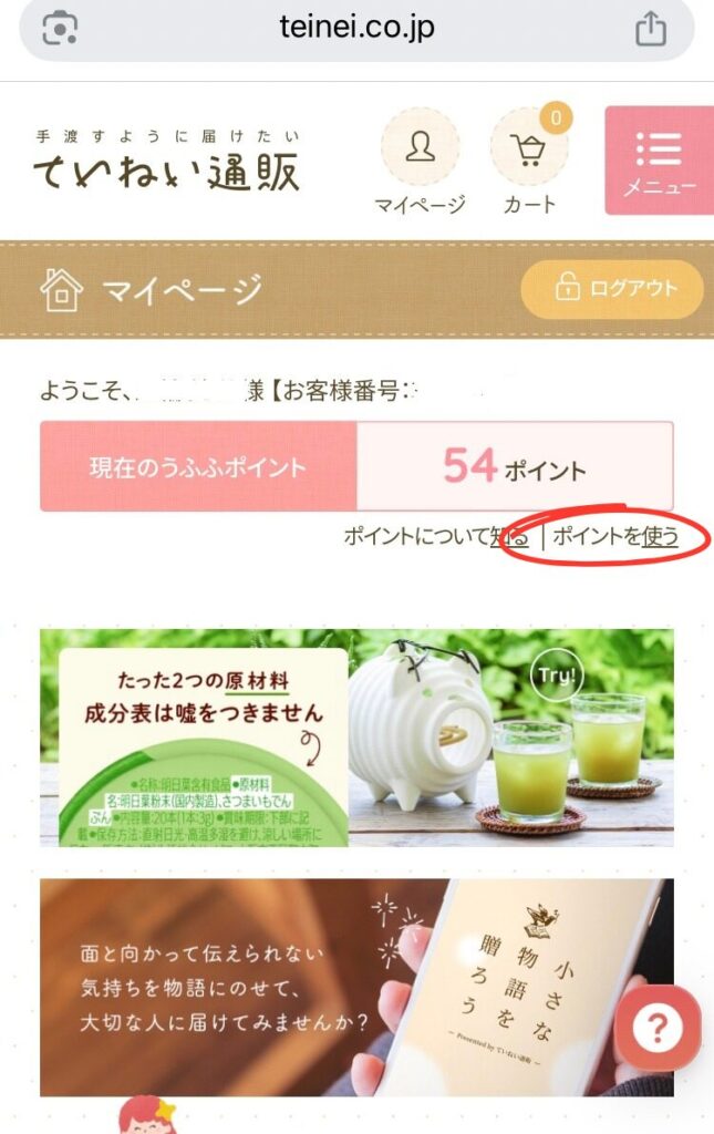 ・うふふポイント=ていねい通販でお買い物をするともらえるポイント