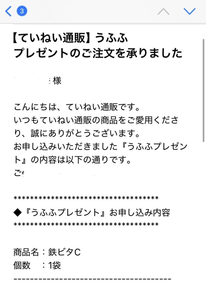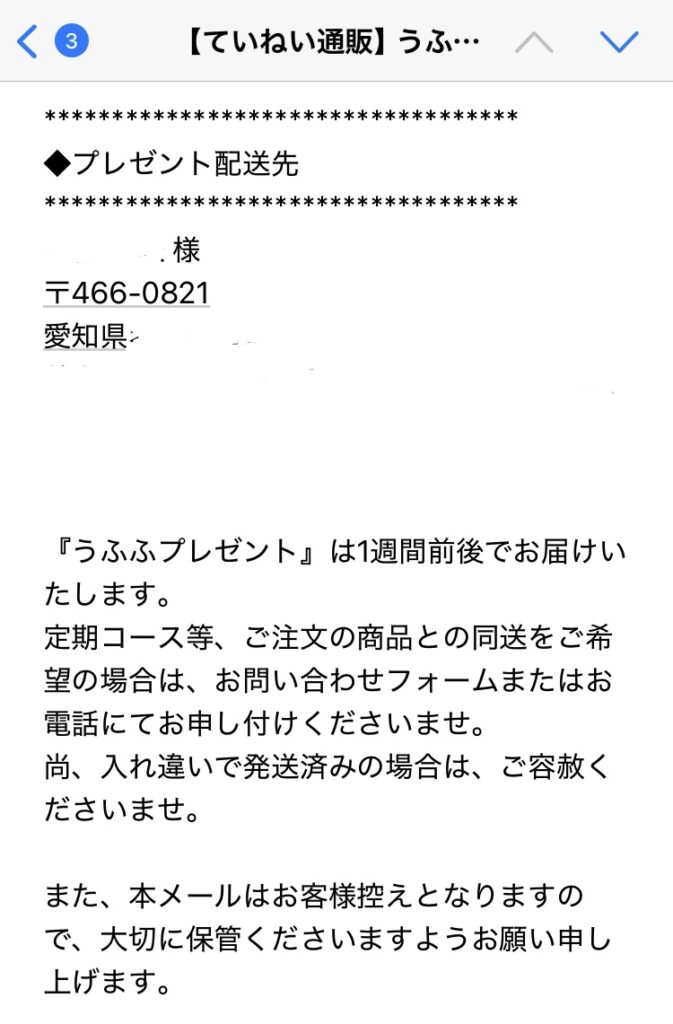 うふふポイントでプレゼント交換を申し込むと、登録していたメールアドレスに控えメールが届きます。