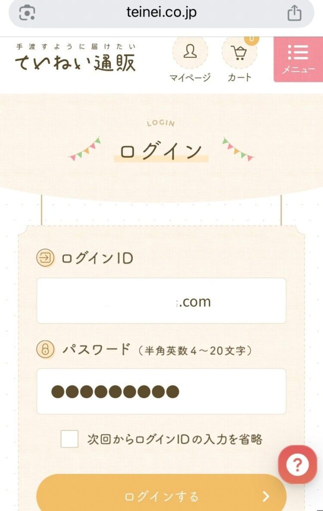 ⑴「ていねい通販」の公式サイトにログイン→マイページが表示される