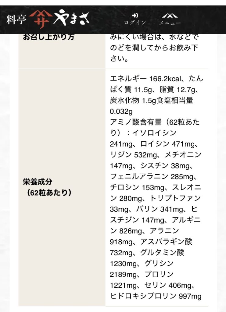 ⬇️は、「すっぽんの恵み」の栄養成分表示です。